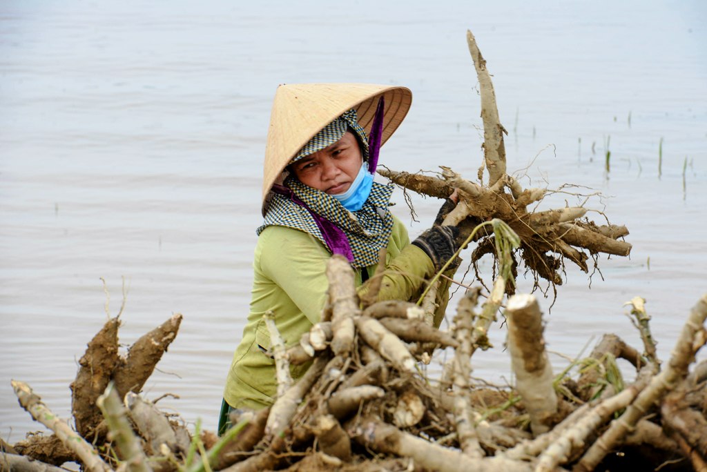 Chị Nguyễn Thị Nhiên ở xã Phong Hòa (huyện Phong Điền) cho biết, lũ ngập tràn trên những cánh đồng sắn làm cho củ sắn ngâm nước bị thối, hư hỏng nặng. Ngay sau lũ, tranh thủ thời tiết tạnh ráo, nông dân tranh thủ huy động người nhà và thuê người để tiến hành nhổ sắn bán cho thương lái thu mua để nhập cho Nhà máy Tinh bột sắn Fococev Thừa Thiên Huế.