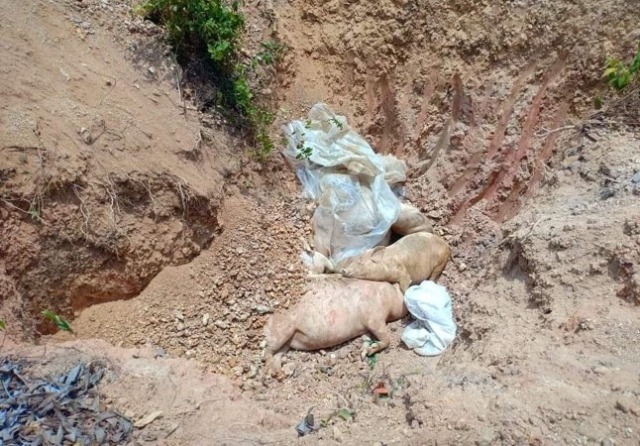 Sau khi nhận được thông tin, lực lượng chức năng thị xã đã đến lấy mẫu máu gửi xét nghiệm, đồng thời hướng dẫn hộ bà Thưởng tiêu hủy 2 con heo chết bằng cách chôn lấp và rắc vôi, vệ sinh, tiêu độc khử trùng chuồng trại, khu vực xung quanh. Đến tối 20/5, kết quả mẫu xét nghiệm cho thấy dương tính với vi rút dịch tả lợn châu Phi.