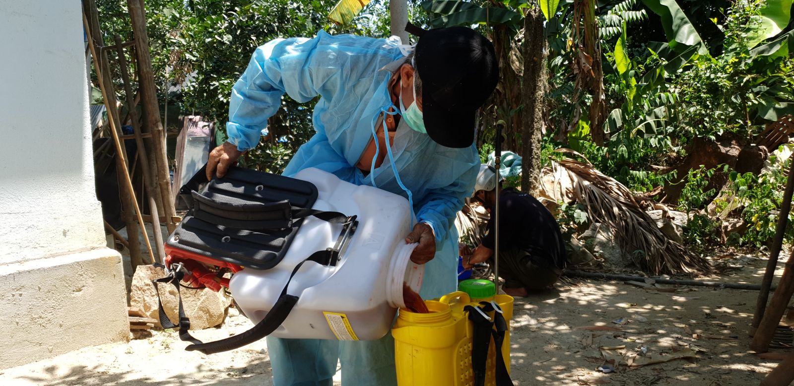Chuẩn bị hóa chất tiêu độc khử trùng khu vực ổ dịch tại Hương An