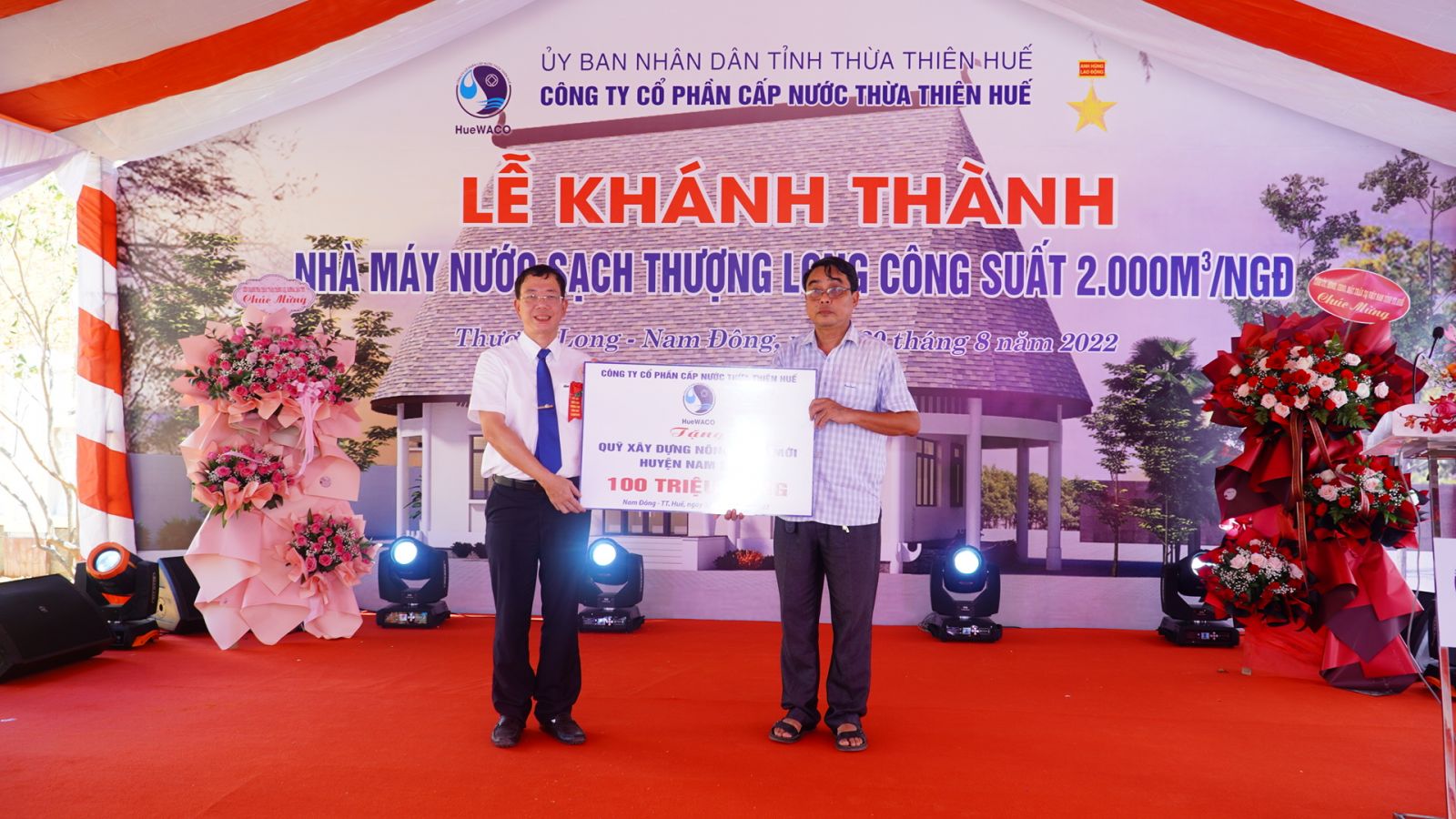 Lãnh đạo HueWACO trao 100 triệu đồng cho Quỹ xây dựng nông thôn mới huyện Nam Đông