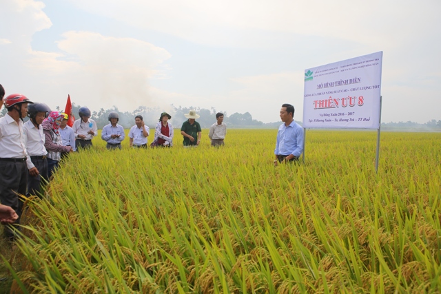 HNN.VN - Việc khảo nghiệm thành công giống Thiên Ưu 8 trên địa bàn thị xã Hương Trà đã mở ra triển vọng mới về hạt lúa mang tính hàng hóa cho người nông dân.