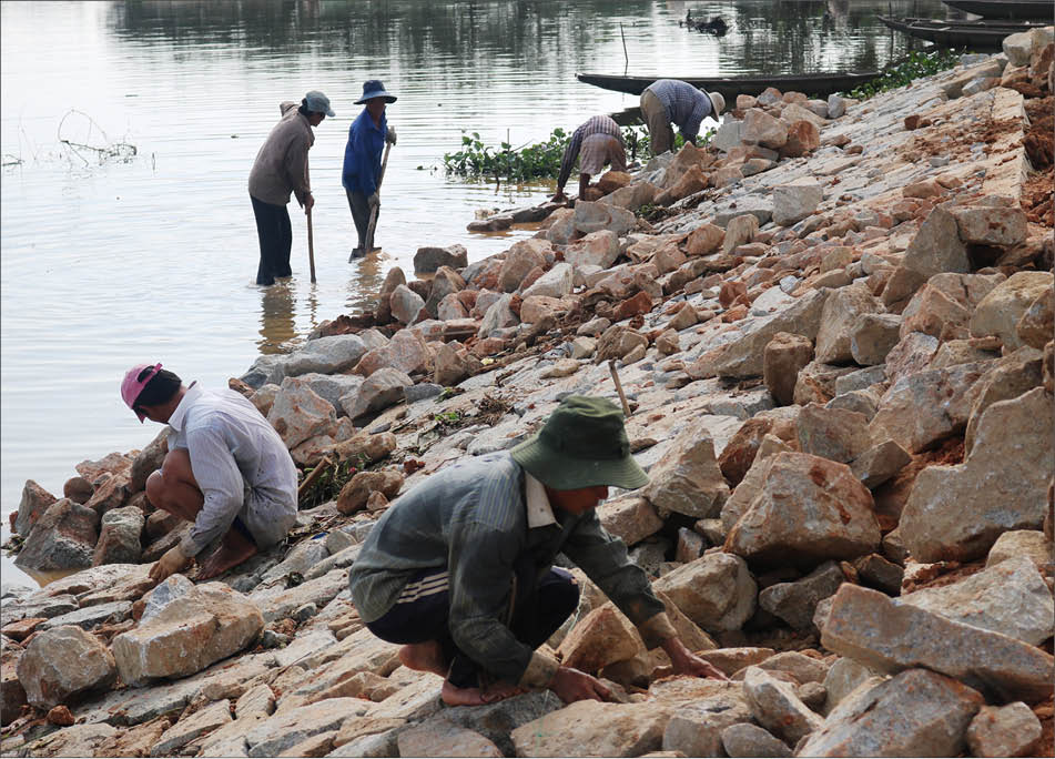 Người dân xã Quảng Lợi gia cố đê trước mùa mưa bão