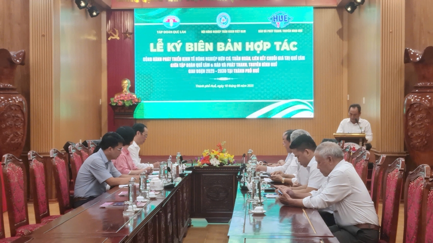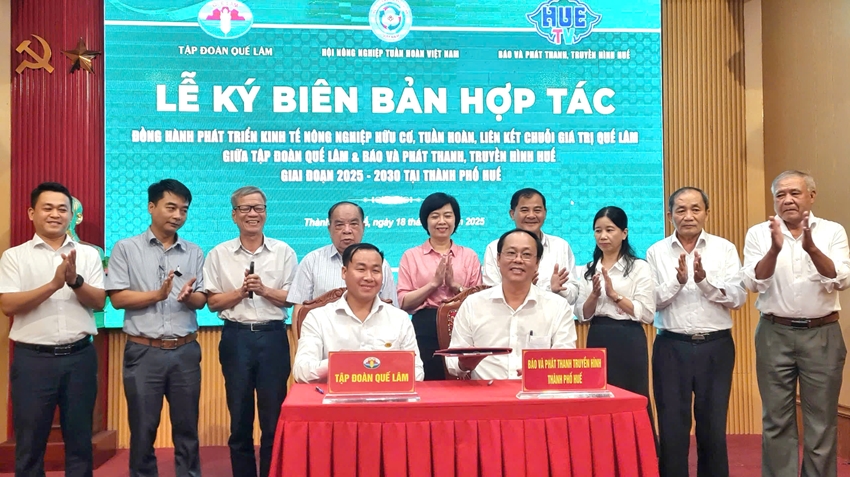 | Báo và Phát thanh, Truyền hình Huế cùng Tập đoàn Quế Lâm ký kết biên bản hợp tác đồng hành phát triển kinh tế nông nghiệp hữu cơ, tuần hoàn |