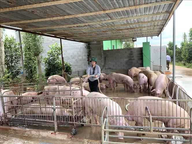 Mặc dù giá lợn hơi tăng cao so với thời điểm đầu năm 2022 nhưng gia đình bà Nguyễn Thu Nguyệt (xã Bình Giã, huyện Châu Đức) vẫn không dám tái đàn lợn do lo ngại giá thức ăn vẫn tiếp tục tăng cao. Ảnh minh họa: Hoàng Nhị/TTXVN