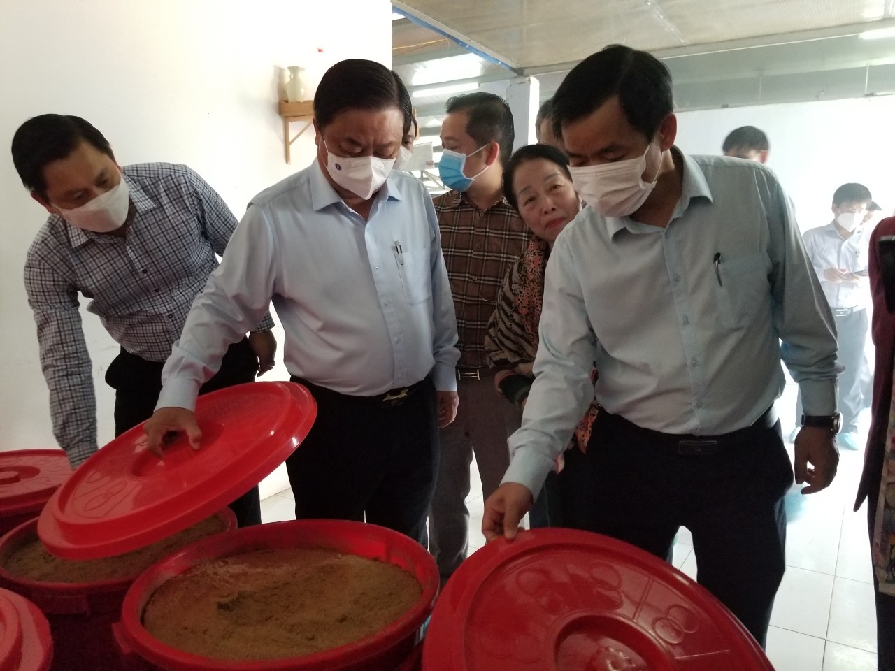Chủ tịch UBND tỉnh Nguyễn Văn Phương kiểm tra quy trình sản xuất nông nghiệp hữu cơ bằng công nghệ vi sinh.