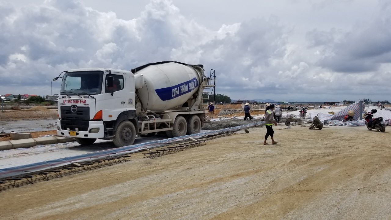 Dự án cảng cá Thuận An (TP. Huế) kết hợp khu neo đậu tránh trú bão có tổng mức đầu tư là 250 tỷ đồng, đến nay tiến độ thi công chỉ đạt gần 40% khối lượng. Kiểm tra tại hiện trường, đơn vị thi công là Công ty TNHH Hoàng Ngọc chỉ bố trí một phương tiện đổ bê tông tươi cho tuyến đường nội bộ cùng một số hạng mục. Tại điểm thi công cũng chỉ có vài công nhân đang làm việc. Đại diện Công ty Hoàng Ngọc cho biết, tổng khối lượng bê tông cần cho giai đoạn này khoảng 5.200m3, bình quân mỗi ngày đổ khoảng 300m3.