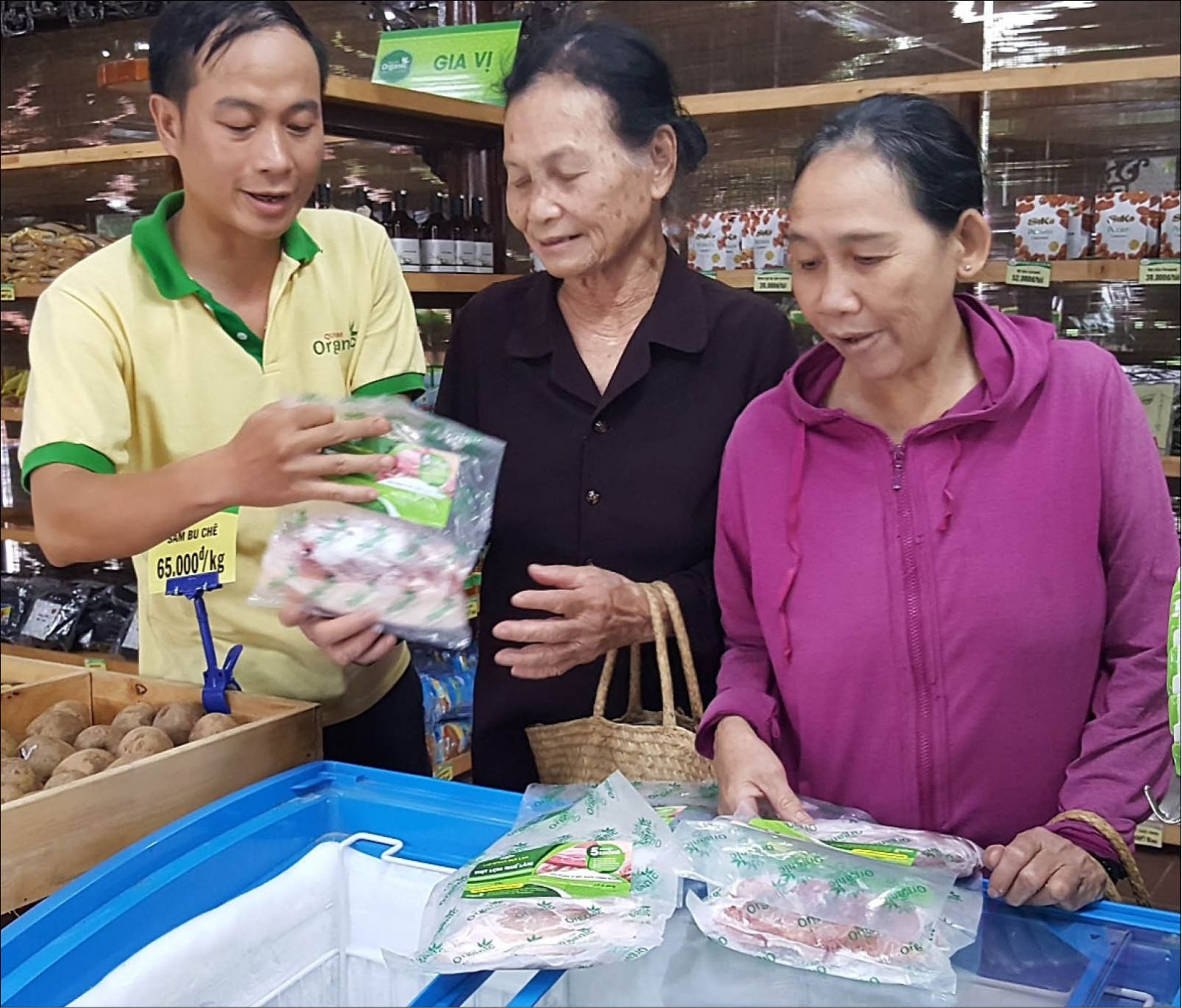 Thịt lợn hữu cơ tại cơ sở Quế Lâm đang được người tiêu dùng tin chọn