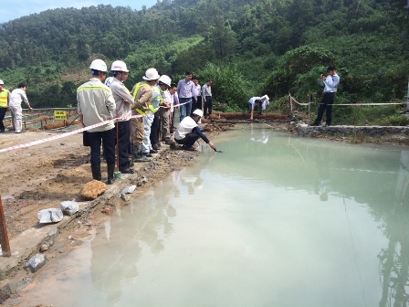 Theo đó, ngày 16/11 (tại thời điểm này công trình đã dừng thi công 10 ngày), đoàn đã tiến hành khảo sát thực địa, lấy mẫu, đo đạc mẫu nước thải phát sinh khi thi công dự án và các mẫu nước trong đầm Lập An. Cụ thể, đối với mẫu nước đầm Lập An, đoàn công tác đã lấy mẫu ở các vị trí như khu vực cầu tạm số 2 và hố móng trụ P13 của công trường; đầm Lập An về phía Tây, khu vực gần lồng nuôi cá các hộ dân…