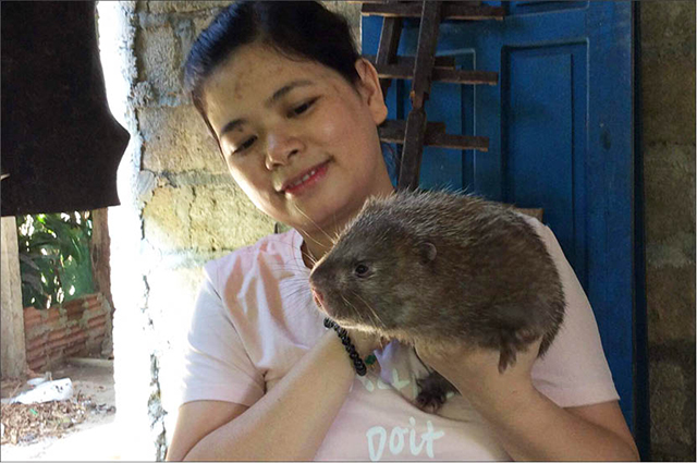 Thận trọng nhất là lúc chị cho thức ăn vào chuồng. Nhẹ nhàng cho dúi quen với sự hiện diện của mình, lùi vào góc trái, chị Nam đẩy khúc mía vào góc phải. Chị phân trần: “Dúi ăn dễ, phân dúi cũng không hôi. Vì thế việc cho ăn và vệ sinh chuồng trại rất dễ dàng. Nếu bận rộn, có thể hai ngày cho dúi ăn một bữa, mỗi tuần vệ sinh chuồng một lần; phải đảm bảo dúi ăn hết thức ăn, tránh dư thừa gây nấm mốc, mầm bệnh cho dúi”.