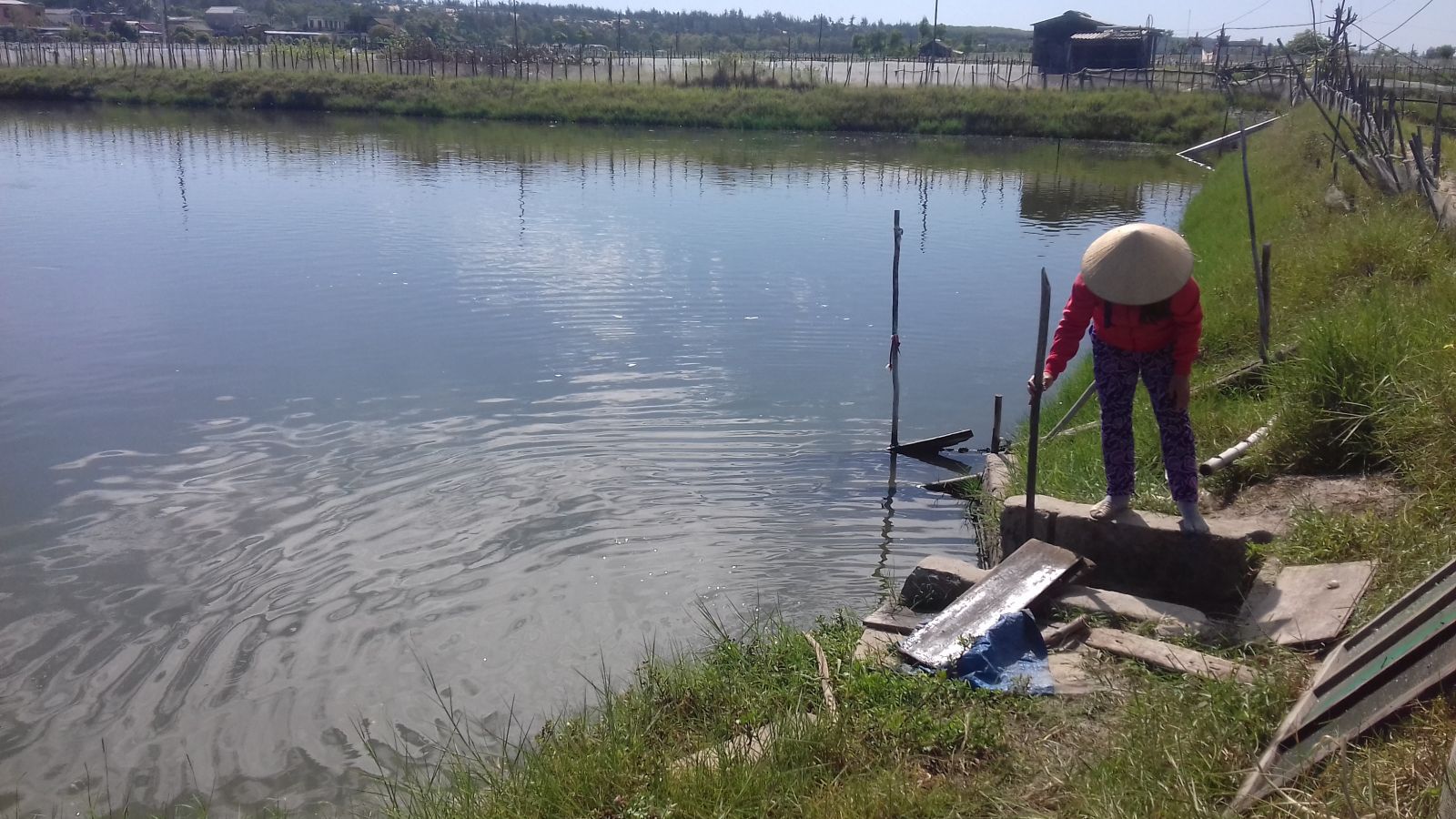 Người dân vùng đầm phá Quảng Điền theo dõi môi trường nước trước khi cấp vào ao nuôi