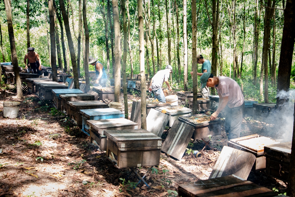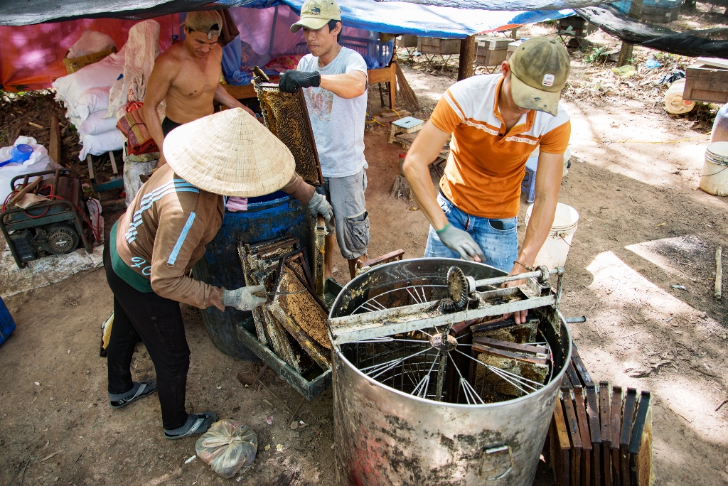 Mùa này, khoảng từ 12 ngày, các chủ trại tiến hành thu hoạch mật