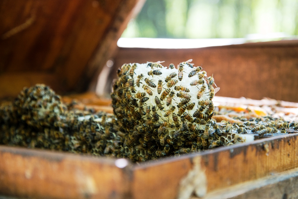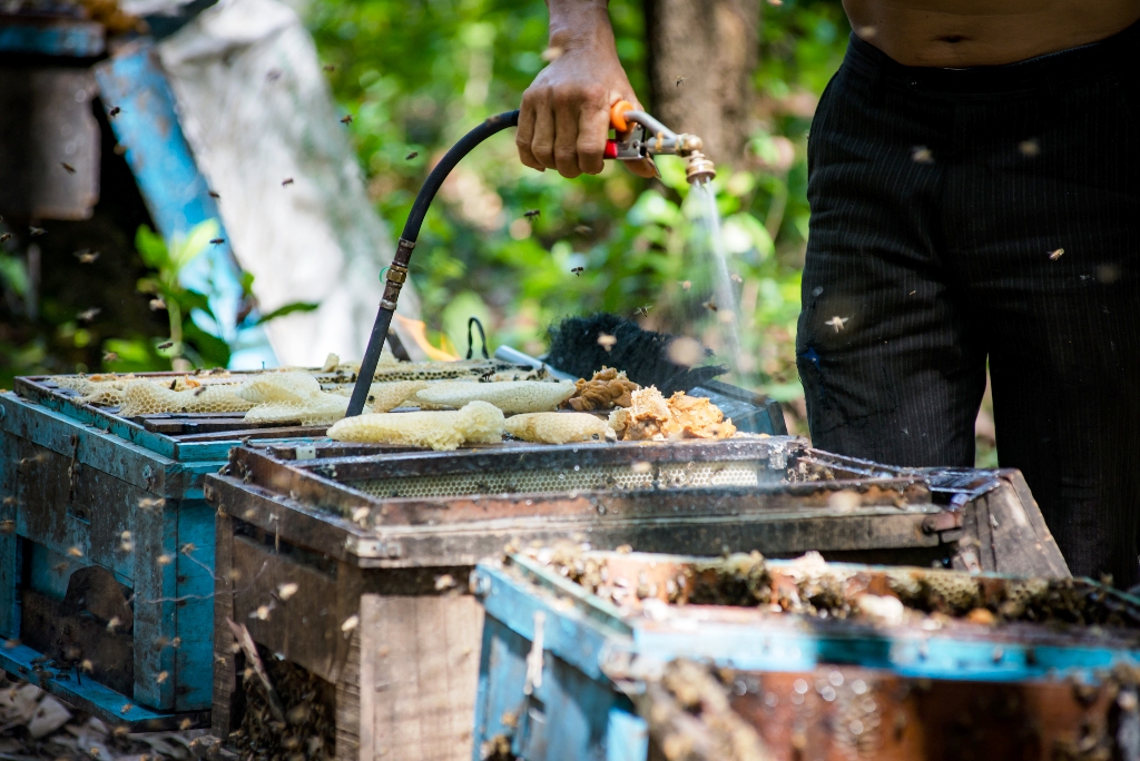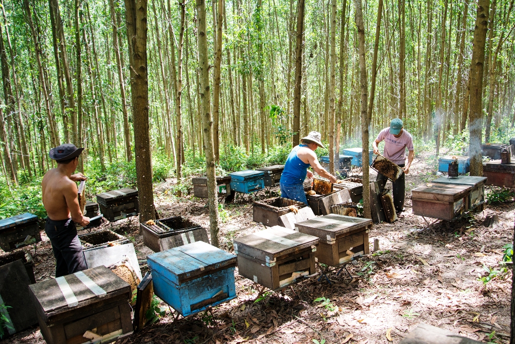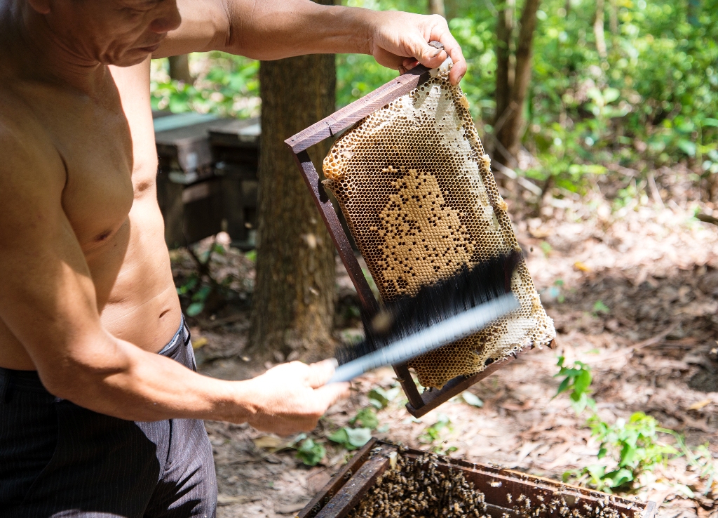HNN.VN - Ngược hướng Tây Nam của TP. Huế, dễ dàng bắt gặp những trại nuôi ong dựa vào lợi thế thiên nhiên. Sau một thời gian ong nuôi tạo mật từ nguồn thức ăn được chủ trại cung cấp, người nuôi bắt tay thu hoạch mật và cung cấp cho thị trường.