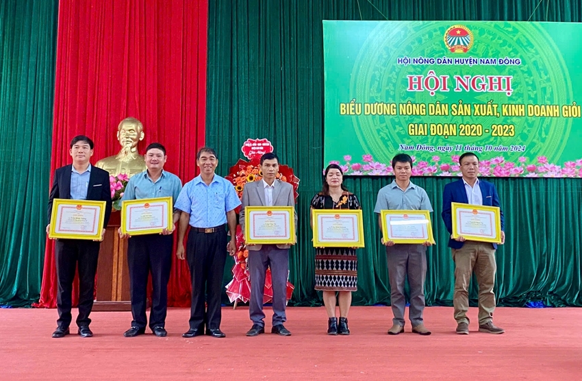 Tại hội nghị, 10 tập thể và 19 cá nhân đã được Hội Nông dân huyện và UBND huyện Nam Đông khen thưởng. Đồng thời, Hội Nông dân huyện trao quyết định công nhận cho 49 hộ nông dân sản xuất, kinh doanh giỏi cấp huyện giai đoạn 2020 – 2023.