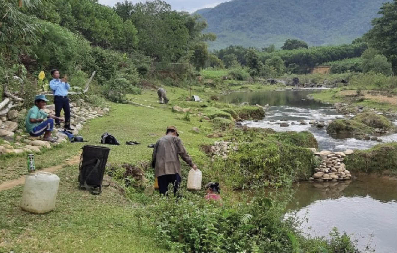 Người dân lấy nước sinh hoạt từ khe tại thôn 7 (xã Thượng Long)