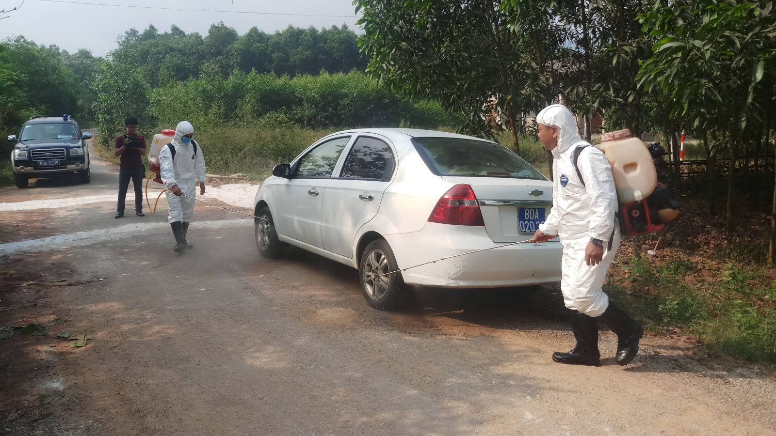 Sáng 19/3, tại điểm dịch gia đình Trần Thị Hồng đã có 2 chốt chặn được lập. Công tác phun thuốc tiêu độc khử trùng được các ngành chức năng của huyện và xã Phong Sơn tiến hành ngay tại khu vực xảy ra dịch.