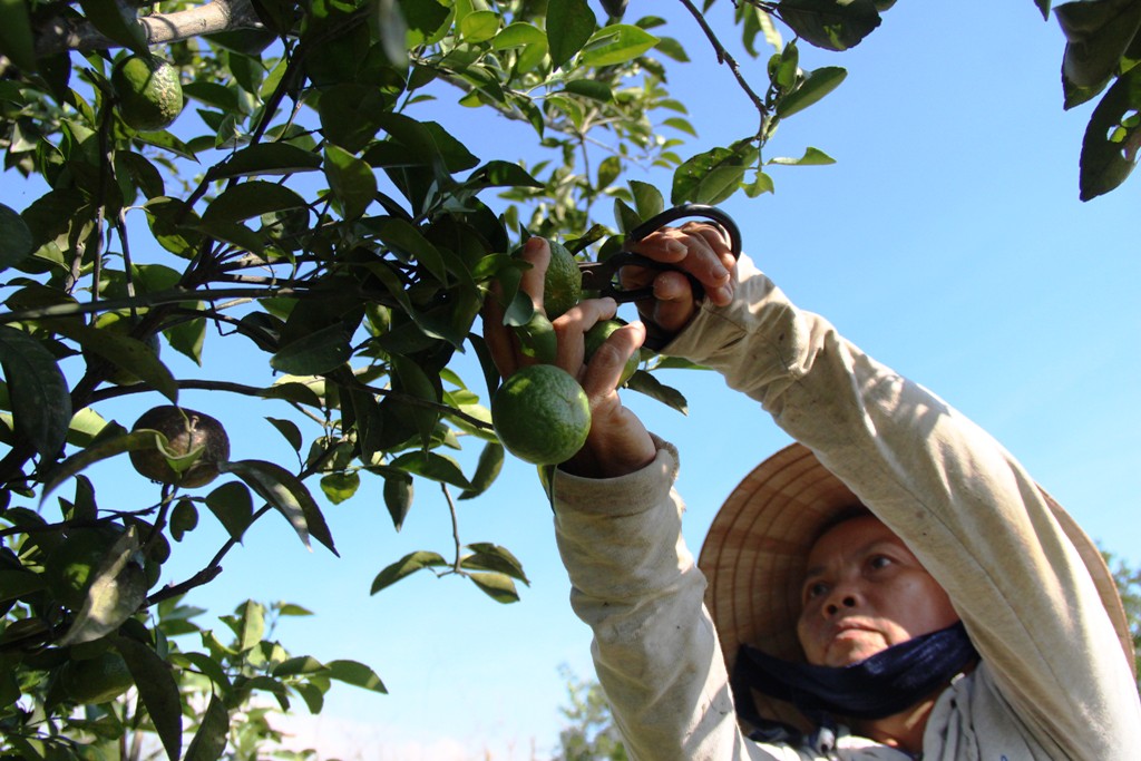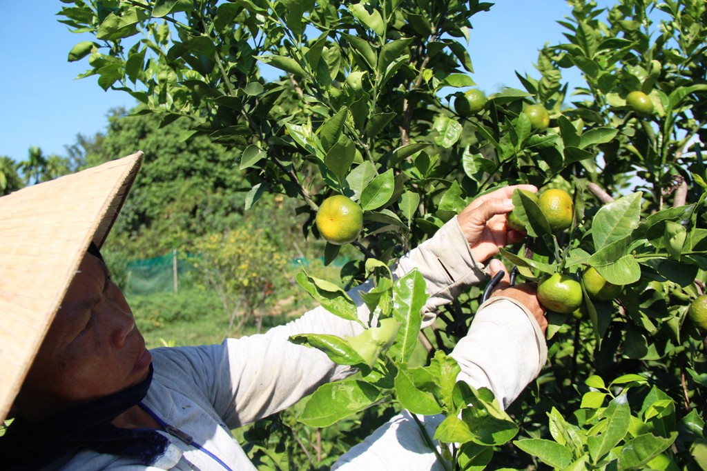 Nông dân Hương Cần tiến hành thu hoạch vụ quýt trước khi mùa mưa bão đến