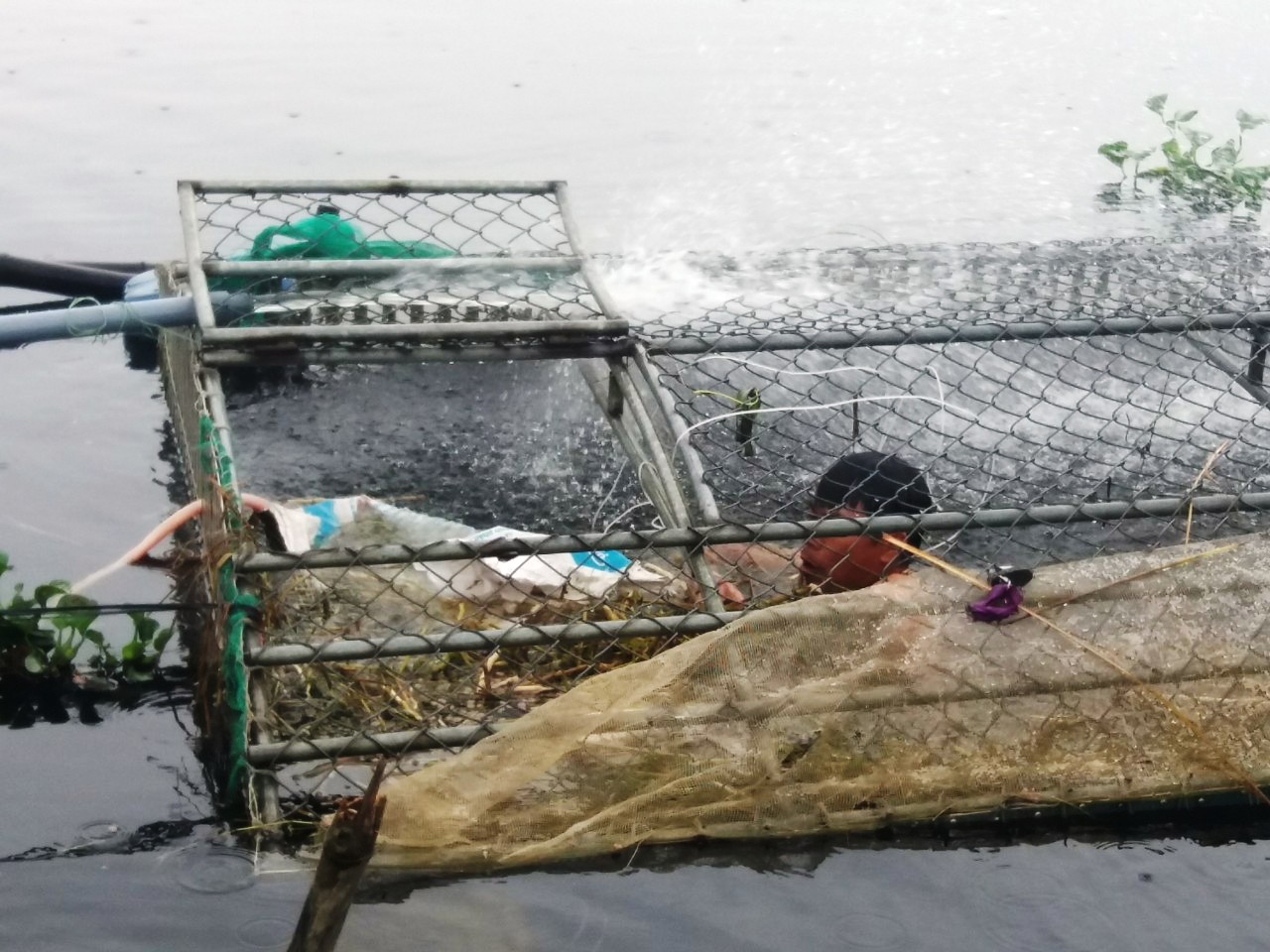 Người dân kiểm tra lồng nuôi, sục khí tạo ô xy cho cá