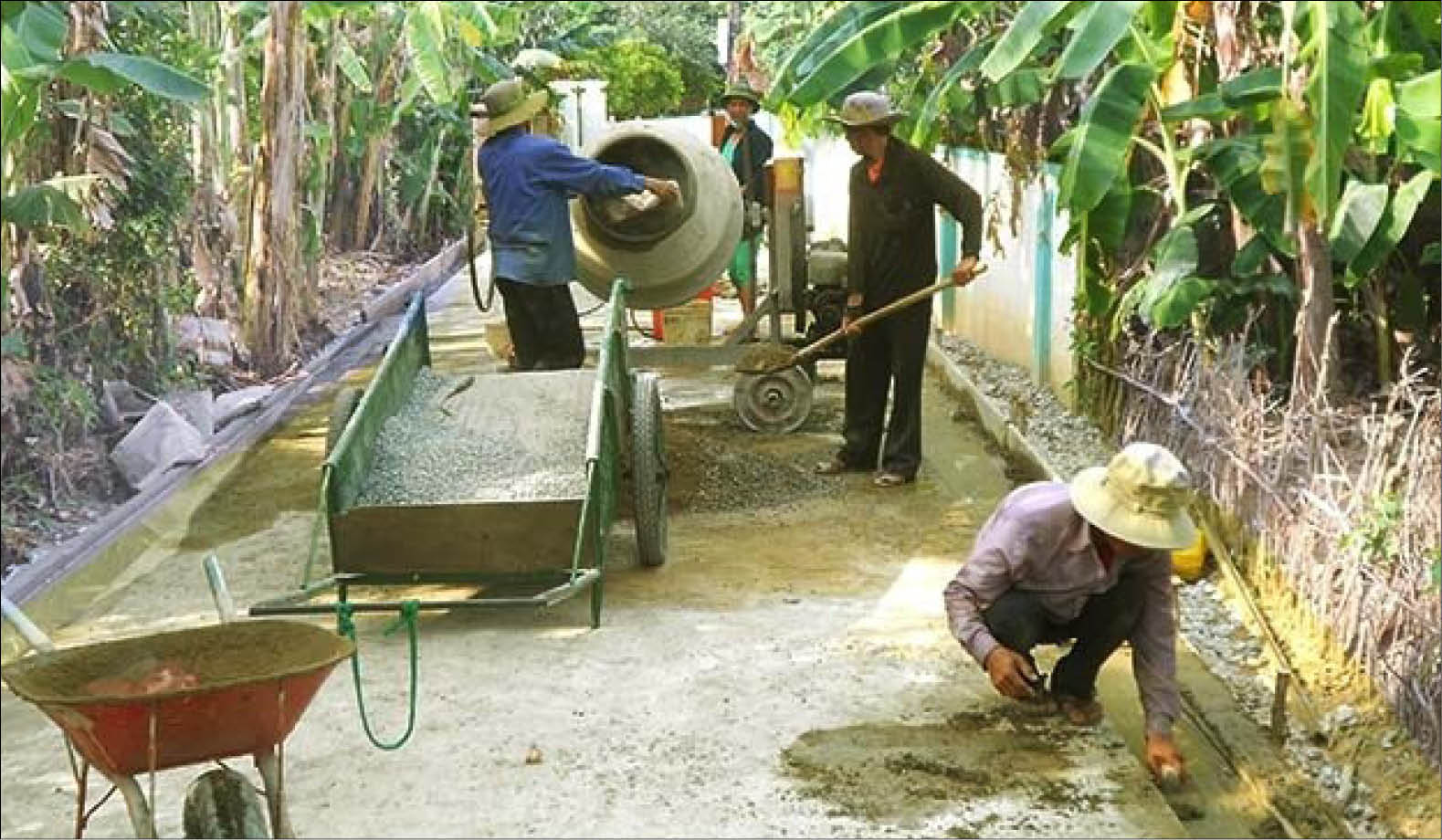 Người dân Quảng Điền tham gia xây dựng đường bê tông