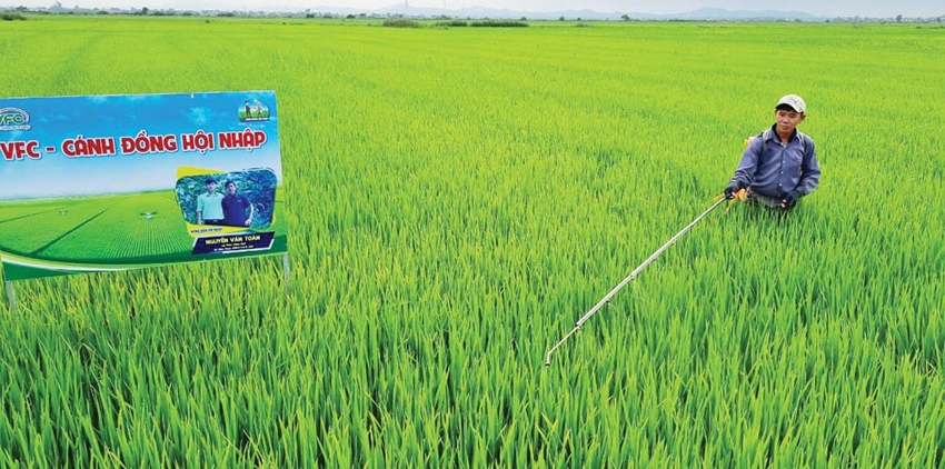 | Ông Nguyễn Văn Toàn chăm sóc cánh đồng lúa nhà mình |