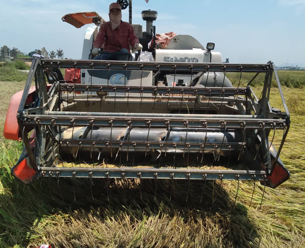 Suốt mấy ngày nay, chiếc máy gặt đập liên hợp của anh Đặng Duy Trung ở xã Hương Phong (TP. Huế) chạy hết công suất để thu hoạch nhanh gọn ruộng lúa của mình và nhiều bà con địa phương. Nhiều ruộng lúa chưa tháo hết nước, nhiều diện tích đổ ngã nhưng máy gặt của anh Trung vẫn cố gắng “xông vào” đồng ruộng thu hoạch.
