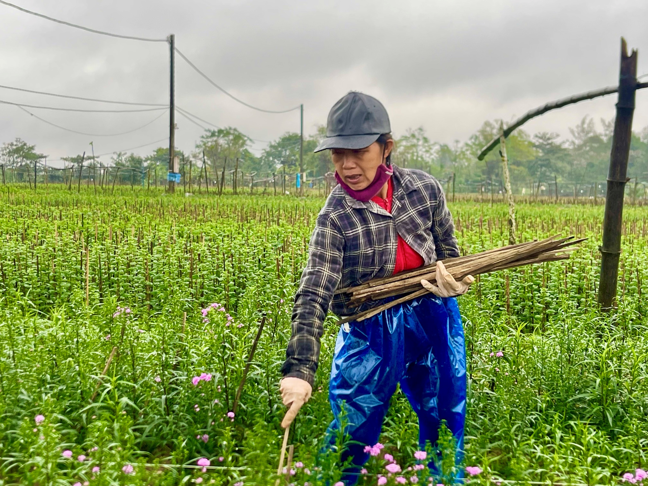 “Nếu thời tiết mà cứ mưa liên tục không ngớt thì hoa năm nay sẽ không được đẹp và bán ra không được giá”, bà Nguyễn Thị Thanh Hồng, 53 tuổi, trú tại thôn Thanh Vinh, ngậm ngùi. Bà Hồng cho biết thêm, vừa qua nông dân bị ảnh hưởng bởi lũ lụt, nỗi lo mùa vụ thất bát vì thiên tai chưa hết thì nay lại bị chuột đến phá.
