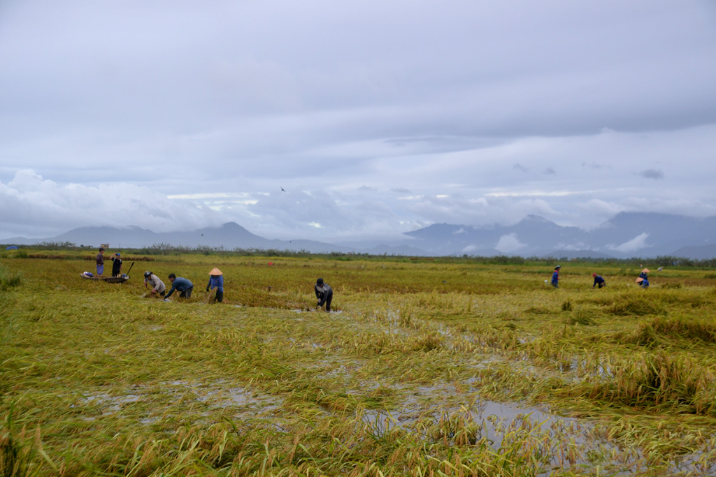 Lúa đổ ngã, ngập nước, nông dân phải gặt tay...