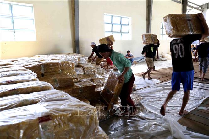 Chế biến cao su tại nhà máy của Tập đoàn Công nghiệp Cao su Việt Nam. Ảnh: Vũ Sinh/TTXVN