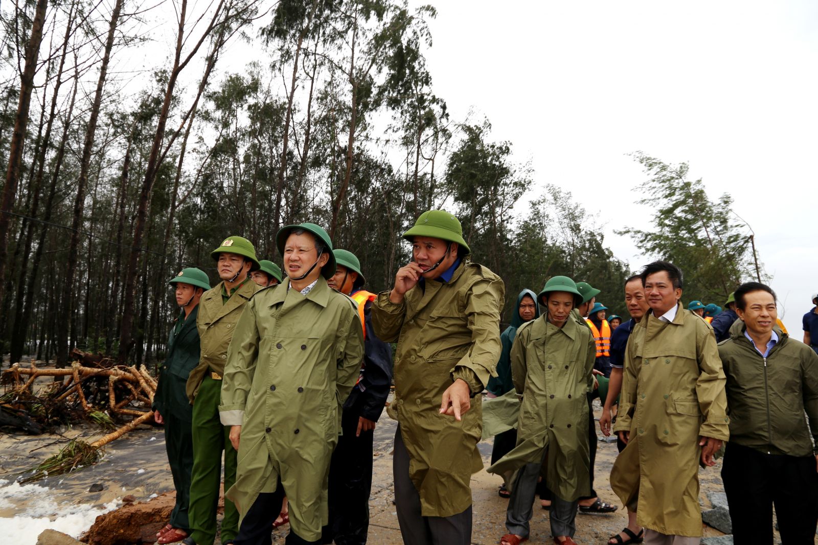 Thực tế khảo sát từng vị trí bị nước biển xâm thực, Bí thư Tỉnh ủy Lê Trường Lưu yêu cầu các đơn vị, ngành chức năng có liên quan và cấp ủy, chính quyền các địa phương huy động lực lượng, triển khai các phương án tối ưu nhất để khắc phục, hạn chế đến mức thấp nhất tình trạng xâm thực bờ biển.