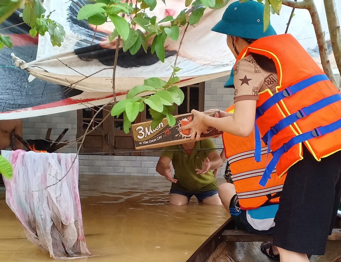Đoàn công tác của Báo Công an TP. Hồ Chi Minh phối hợp cùng Công an tỉnh trao tặng 20 tấn gạo cho bà con có hoàn cảnh khó khăn tại vùng lũ, 5.000 thùng nước cho người dân bị ngập cùng lực lượng thực hiện nhiệm vụ cứu hộ cứu nạn tại TX. Hương Trà, Hương Thủy, Phong Điền và Quảng Điền.