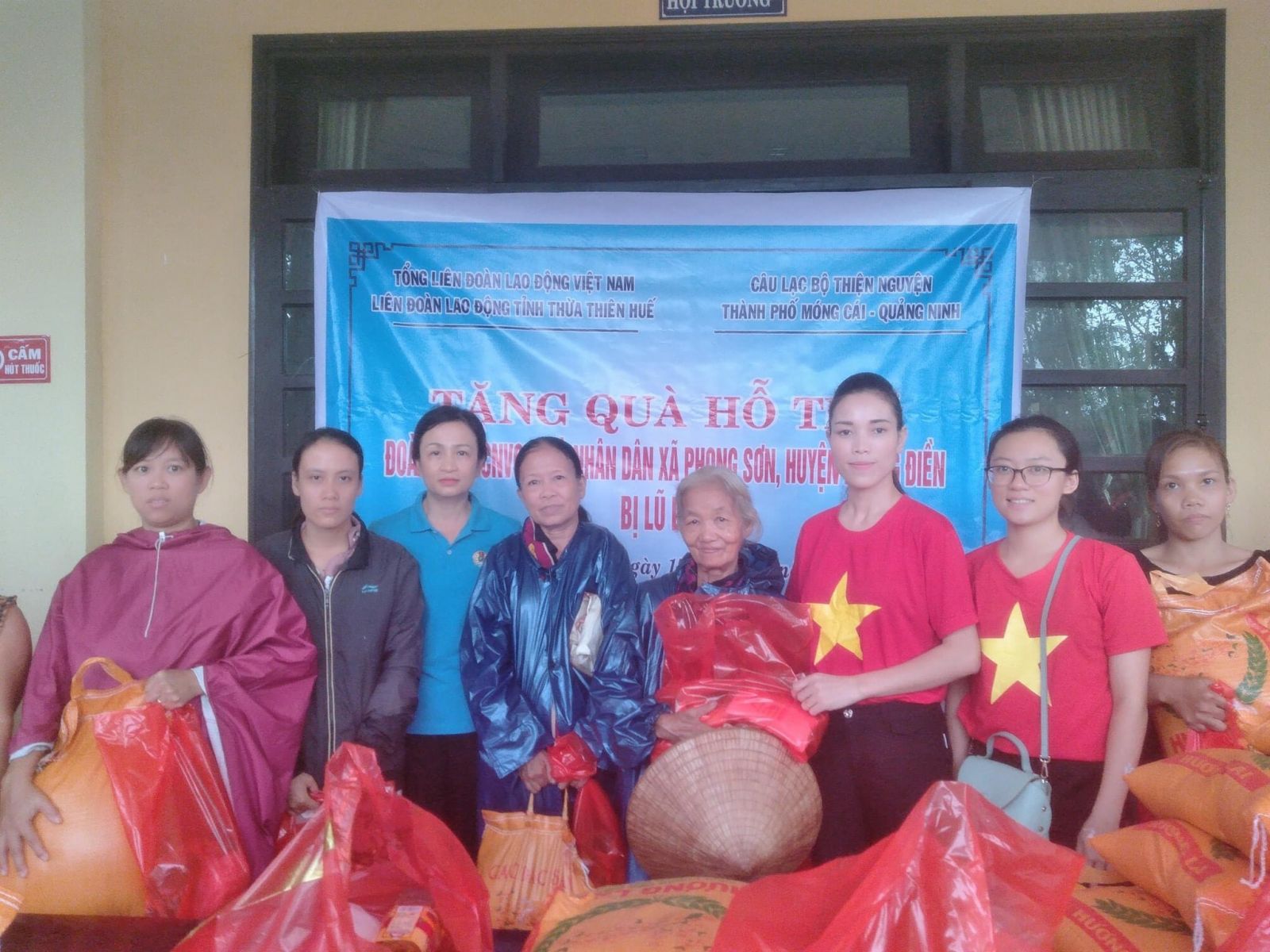 * Liên đoàn Lao động tỉnh và CLB Thiện nguyện Móng Cái (Quảng Ninh) đã đến thăm, tặng quà hỗ trợ cho người ở dân các địa phương đang bị ngập lụt nặng trên địa bàn tỉnh.