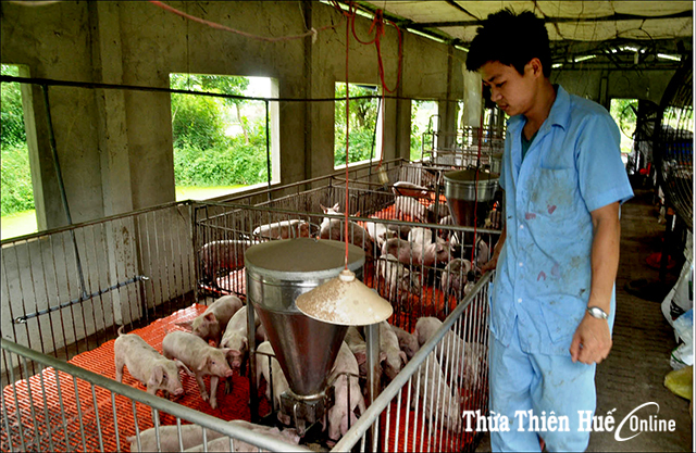 Tại gia trại của anh Tạ Quang Thiên (thôn Hiền An), có 30 lợn nái và 150 lợn thịt. Với chuồng nuôi được xây dựng hiện đại, theo mô hình nuôi công nghiệp. Mỗi năm, ngoài lợn nái cung cấp nguồn giống tại chỗ, gia trại anh Thiên xuất chuồng chừng 4 lứa lợn thịt, trọng lượng đạt 80kg/con. Anh Thiên cho biết: “Mình cùng một người bạn nữa vốn xuất thân từ Trường ĐH Nông lâm, được đào tạo bài bản, lập gia trại này gần hai năm qua. Mặc dù ngay từ ban đầu, theo khuyến cáo của đơn vị thú y cùng chính quyền địa phương, trại mình tiến hành tiêm phòng đầy đủ, tiêu độc khử trùng thường xuyên chuồng nuôi nhưng hiện vẫn khá lo lắng bởi tổng số đàn khá lớn”.