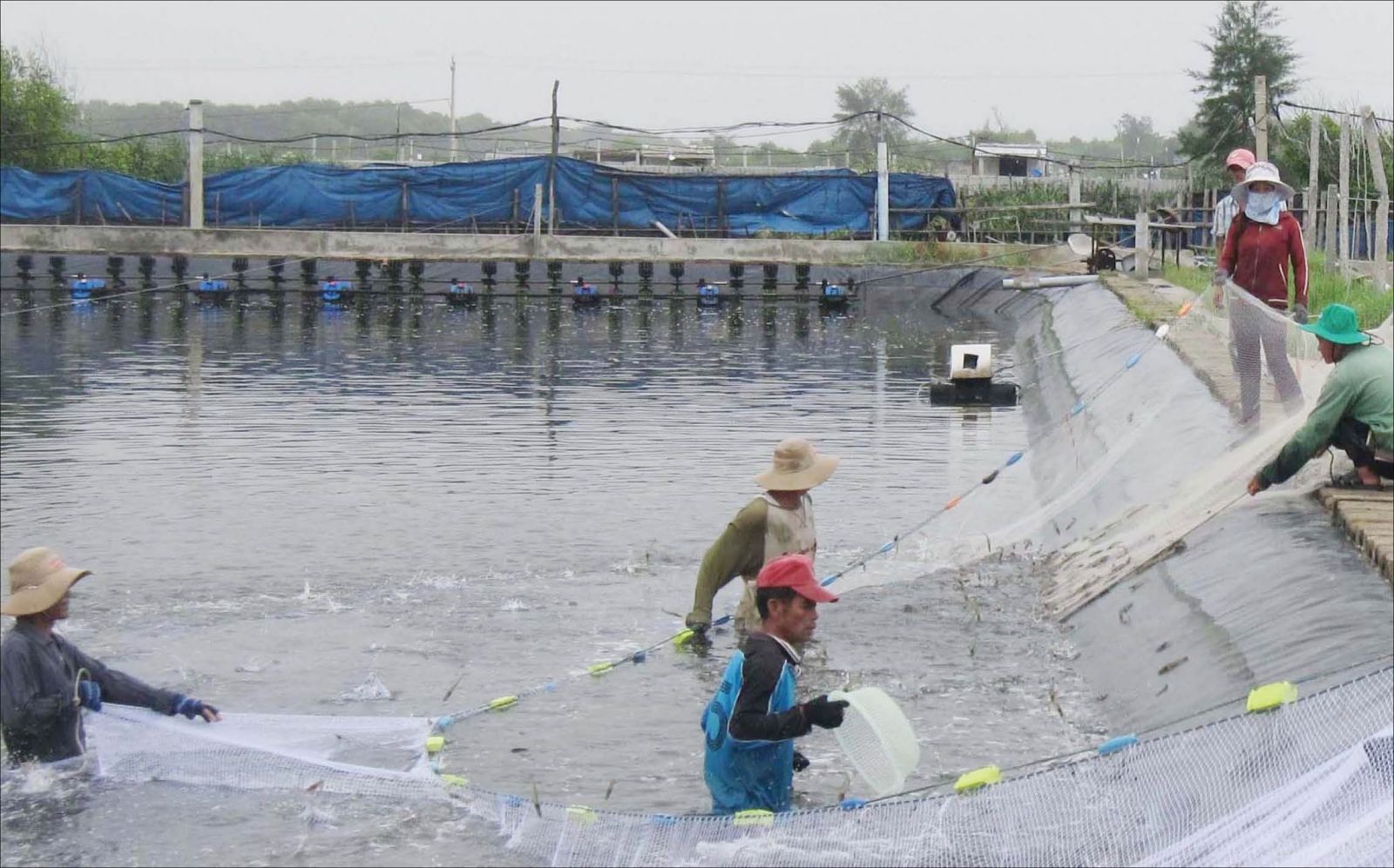 Mô hình nuôi tôm TCT bằng CNNN tại xã Phú Thuận (Phú Vang) được xây dựng theo quy trình khép kín với 3 ao nuôi rộng gần 1ha và các ao lắng nằm giữa cánh rừng phi lao. Cứ mỗi ao nuôi có từ 1-2 giàn quạt điện quay đều thường xuyên để tạo nguồn ô xi cho ao tôm. Cán bộ, công nhân ở đây thay phiên túc trực cả ngày lẫn đêm, chăm sóc từ cho tôm ăn đến xử lý môi trường.