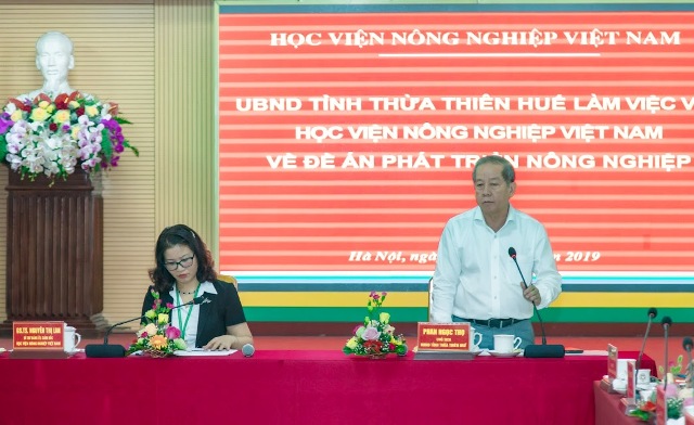 Giám đốc Học viện Nông nghiệp Việt Nam GS. TS Nguyễn Thị Lan cho biết, sau khi dự hội nghị “Nông nghiệp Thừa Thiên Huế phát triển bền vững, an toàn- ứng dụng công nghệ cao” tại tỉnh Thừa Thiên Huế (cuối tháng 7/2019), Học viện đã triển khai nhiều hoạt động thúc đẩy phát triển nông nghiệp cho Thừa Thiên Huế. Đồng thời nhận thấy Thừa Thiên Huế có nhiều lợi thế và tiềm năng phát triển nông nghiệp. Đó là điều kiện địa lý, giao thông thuận lợi; địa phương là một cực tăng trưởng nằm trong vùng kinh tế phát triển miền Trung, hành lang kinh tế Đông-Tây. Điều kiện tự nhiên thuận lợi cho phát triển nông nghiệp, đa dạng sinh hoc quy mô lớn; có nguồn gen dồi dào và đa dạng sinh học để phát triển các sản phẩm nông nghiệp hàng hóa chất lượng cao.
