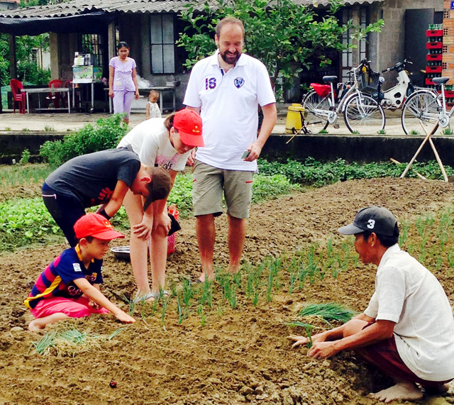 Du khách tham quan và trải nghiệm trồng hành lá với nông dân La Chữ (Hương Chữ, Hương Trà)