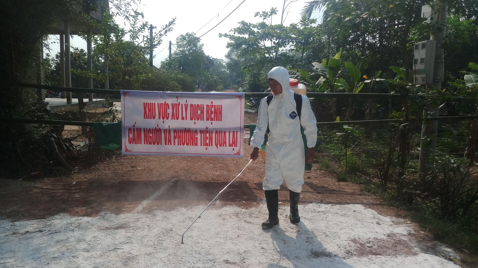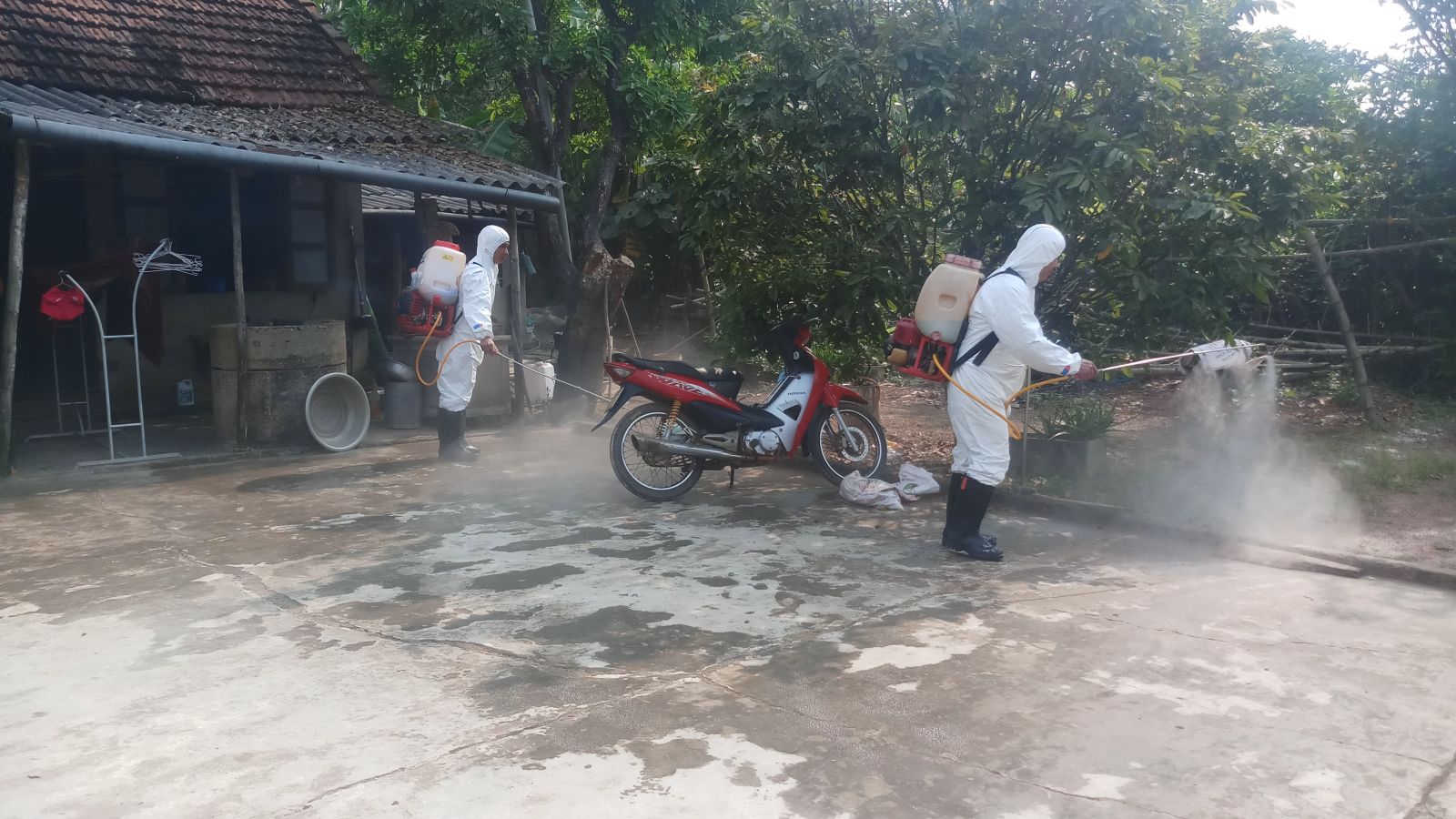 Tiêu độc khử trùng và lập chốt chặn tại xã Phong Sơn, nơi xảy ra DTLCP