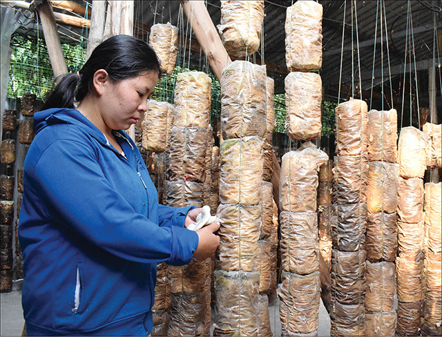 Chị Trần Thị Thu Hương (Phong Chương) khởi nghiệp bằng mô hình trang trại trồng nấm kết hợp chăn nuôi