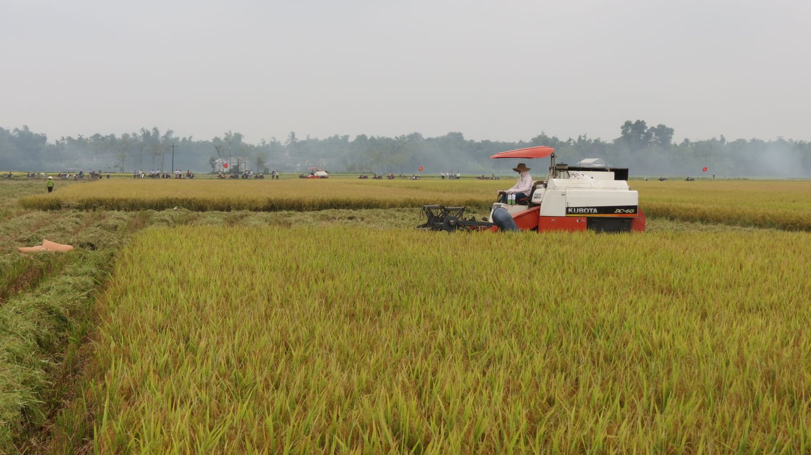 Phong Điền tập trung nhân lực và phương tiện máy móc đẩy nhanh tiến độ thu hoạch lúa hè thu