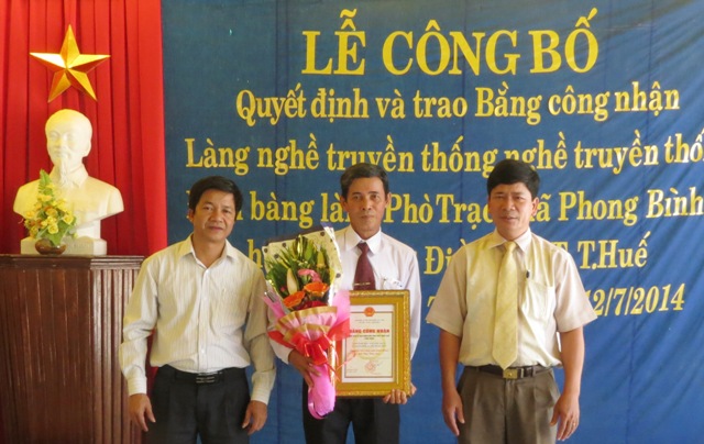 Ngày 12/7, UBND xã Phong Bình công bố quyết định và trao bằng công nhận Làng nghề truyền thống và Nghề truyền thống đệm bàng Phò Trạch (xã Phong Bình, huyện Phong Điền) do UBND tỉnh trao tặng.