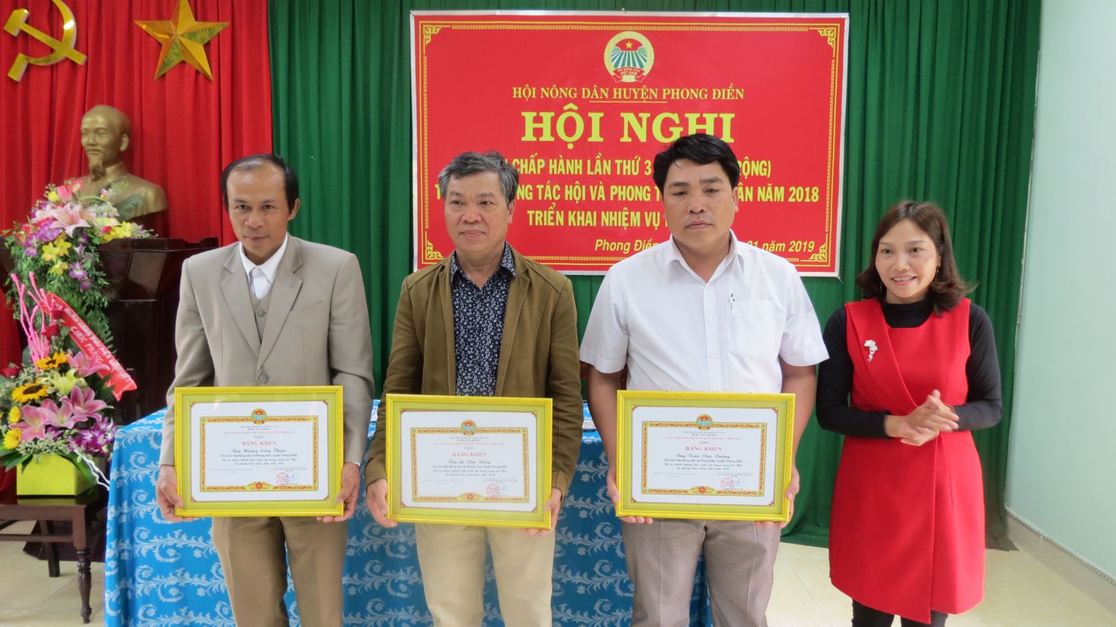 Dịp này, Ban Chấp hành Hội Nông dân tỉnh và huyện Phong Điền đã tặng bằng khen và giấy khen cho 6 tập thể và 12 cá nhân có thành tích xuất săc trong công tác Hội và phong trào nông dân năm 2018.