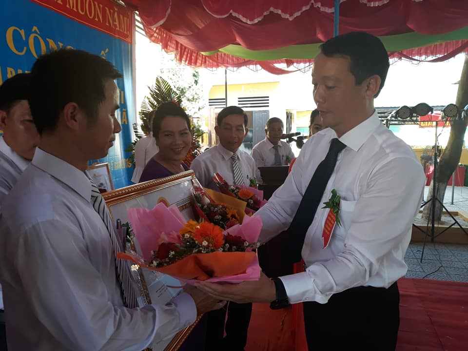 Phó Chủ tịch Phan Thiên Định tặng hoa chúc mừng và trao Cờ thi đua, Bằng khen cho UBND xã Phú Hải