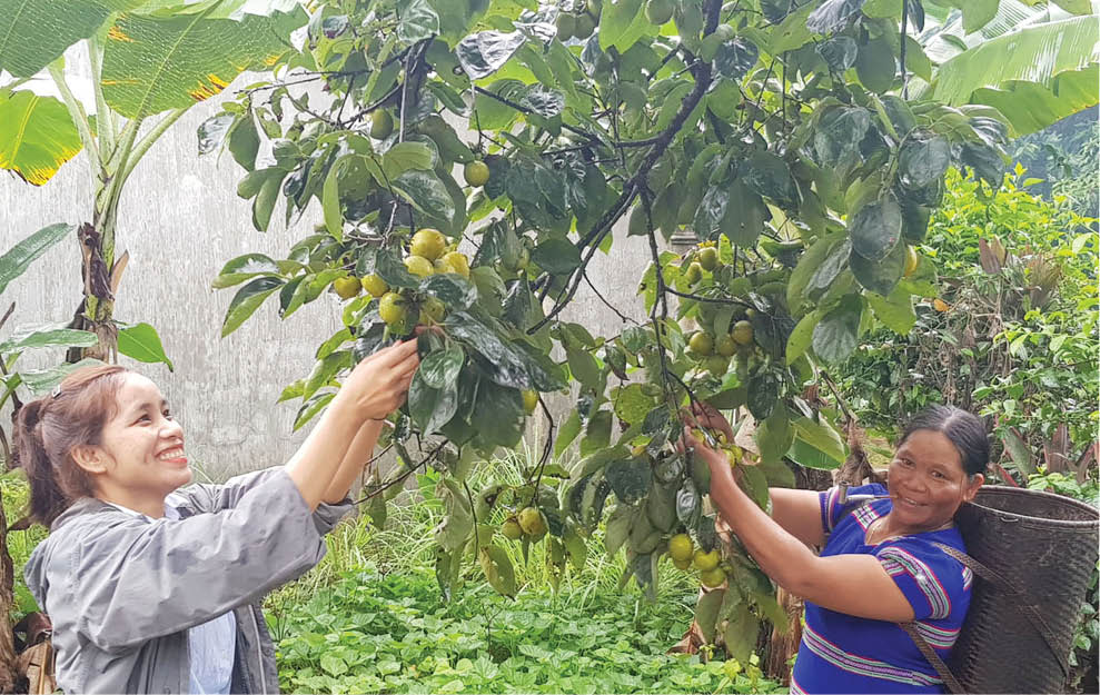 Mùa hồng chín rộ, bà Kăn Tei ở xã A Ngo ngồi cùng cháu gái xuyên trưa bán mấy rổ hồng nhà. Bà Tei cho hay, cháu gái vụng tính toán nên mình ra giúp đỡ. Mấy cây hồng nhà cháu bà đã cho thu hoạch đợt thứ hai, mỗi lần bán được khoảng 200 ngàn đồng.