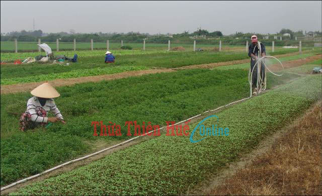 | Nhiều nông dân cùng sản xuất trên một diện tích nhỏ (làng rau Thành Trung, xã Quảng Thành) |