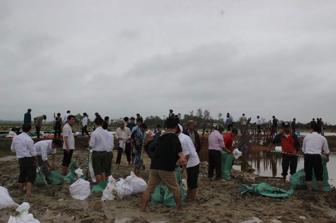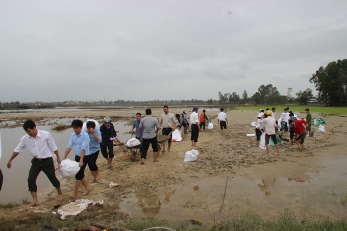 Theo ông Hoàng Vọng, Phó trưởng Phòng Nông nghiệp và Phát triển Nông thôn huyện Quảng Điền, hiện tuyến đê Diên Hồng có nhiều điểm tràn, 3 điểm bị nứt, vỡ. Tại tuyến trạm bơm tiêu Kênh Trộ, HTX số 1 Sịa, đê bao bờ vùng dài 25m bị vỡ, có điểm sâu 2m uy hiếp trực tiếp 120 ha lúa của HTX Sịa 1 và HTX Đông Vinh. Ngoài ra, các tuyến đê Đông Lâm, tuyến dọc bờ kênh Diên Hồng, dọc phá Tam Giang của HTX Thông Nhất nhiều điểm bị tràn, nứt phải huy động lực lượng túc trực và gia cố, nguy cơ vỡ rất cao.