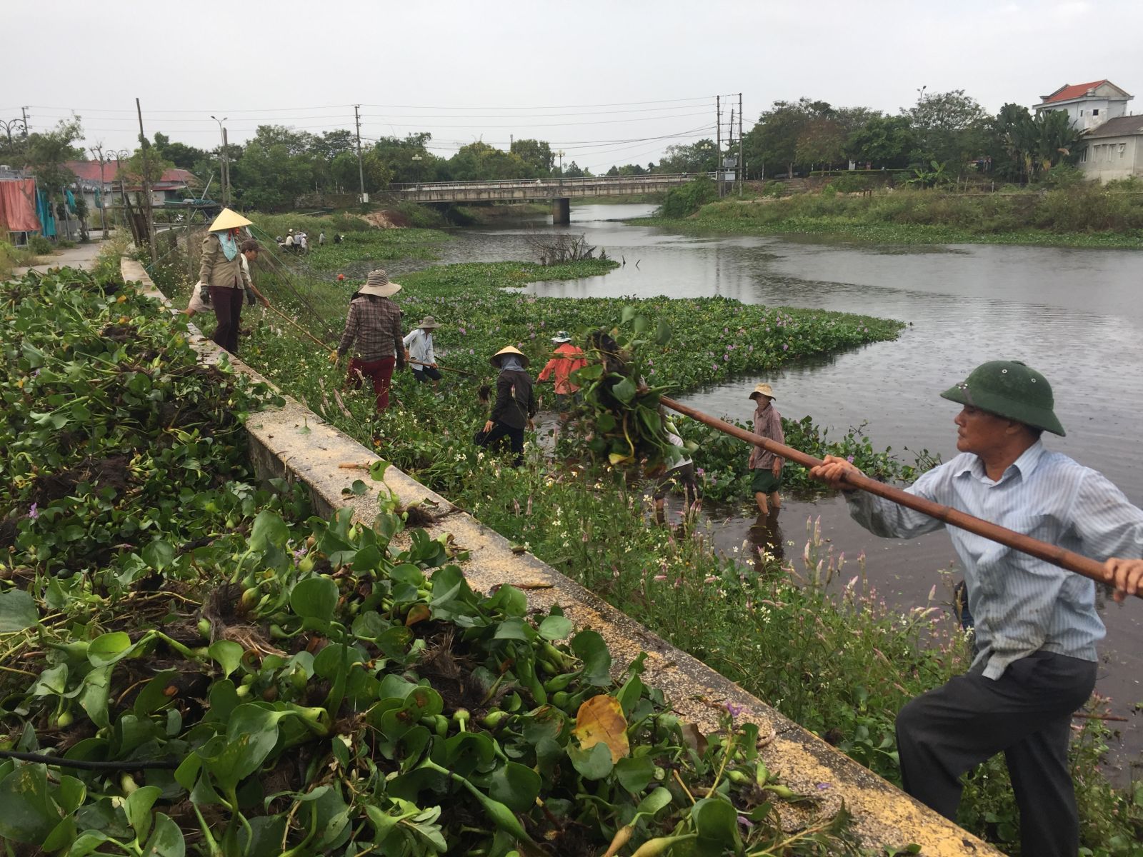 Quảng Điền ra quân diệt bèo lục bình trên sông