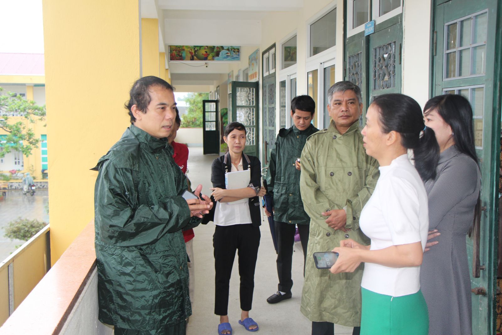 Chủ tịch UBND TP. Huế Võ Lê Nhật (bìa trái) kiểm tra công tác PCLB tại Trường tiểu học Thuỷ Vân