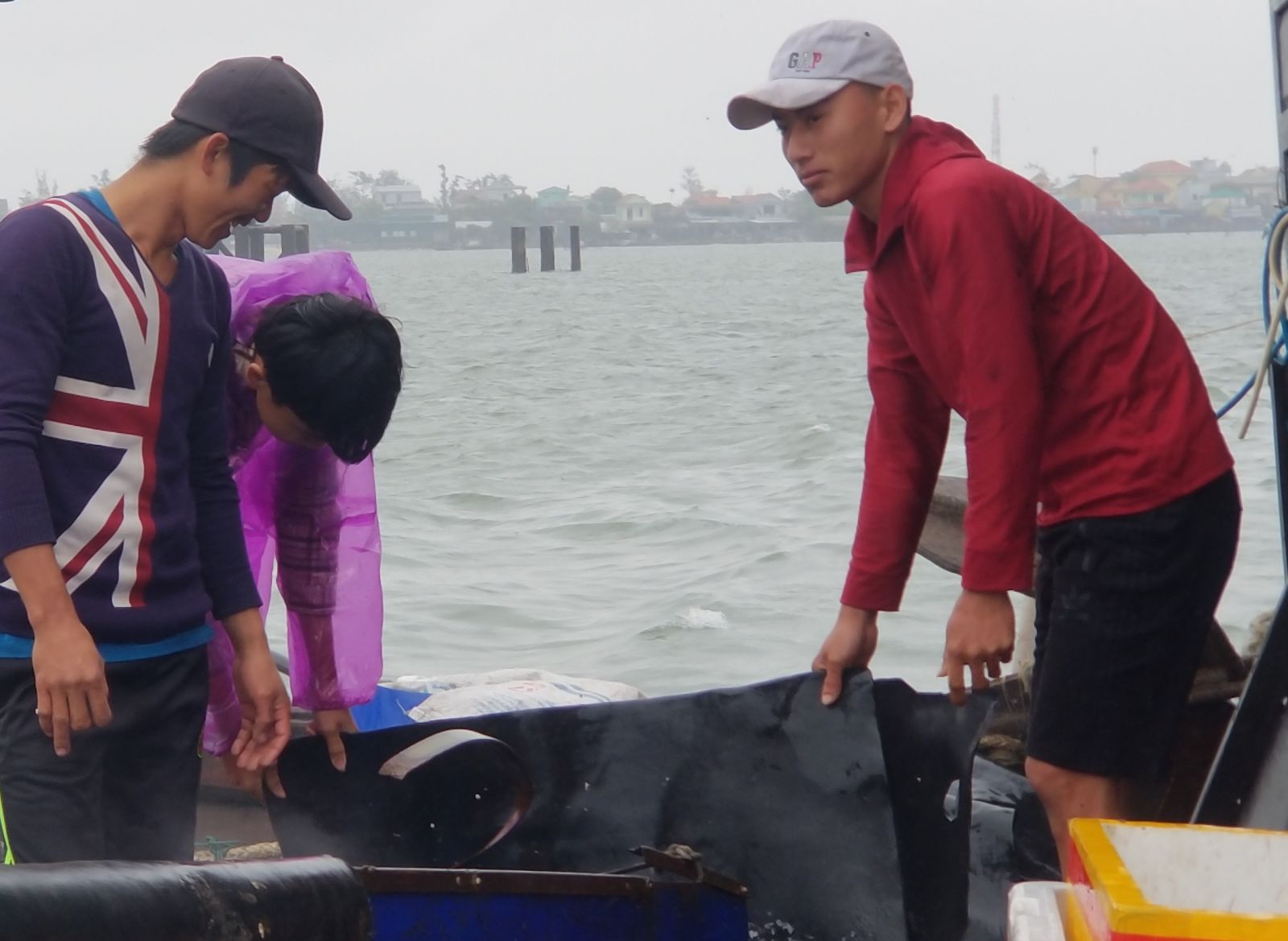 Ngư dân Thuận An chuẩn bị hầm bảo quản hải sản trước chuyến biển