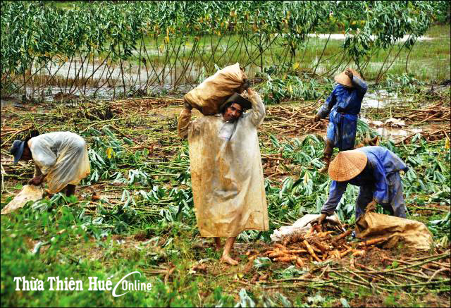 Liên tiếp xảy ra mưa lớn, áp thấp nhiệt đới, khiến hàng trăm ha sắn tại nhiều vùng thấp trũng ở các địa phương Phong Điền, Hương Trà… bị ngập úng, bà con nông dân đang tập trung thu hoạch số diện tích này tránh thiệt hại. Tuy nhiên, giá sắn củ hiện nay được Nhà máy tinh bột sắn Thừa Thiên Huế thu mua chỉ bằng 30-50% thời điểm này những năm trước.
