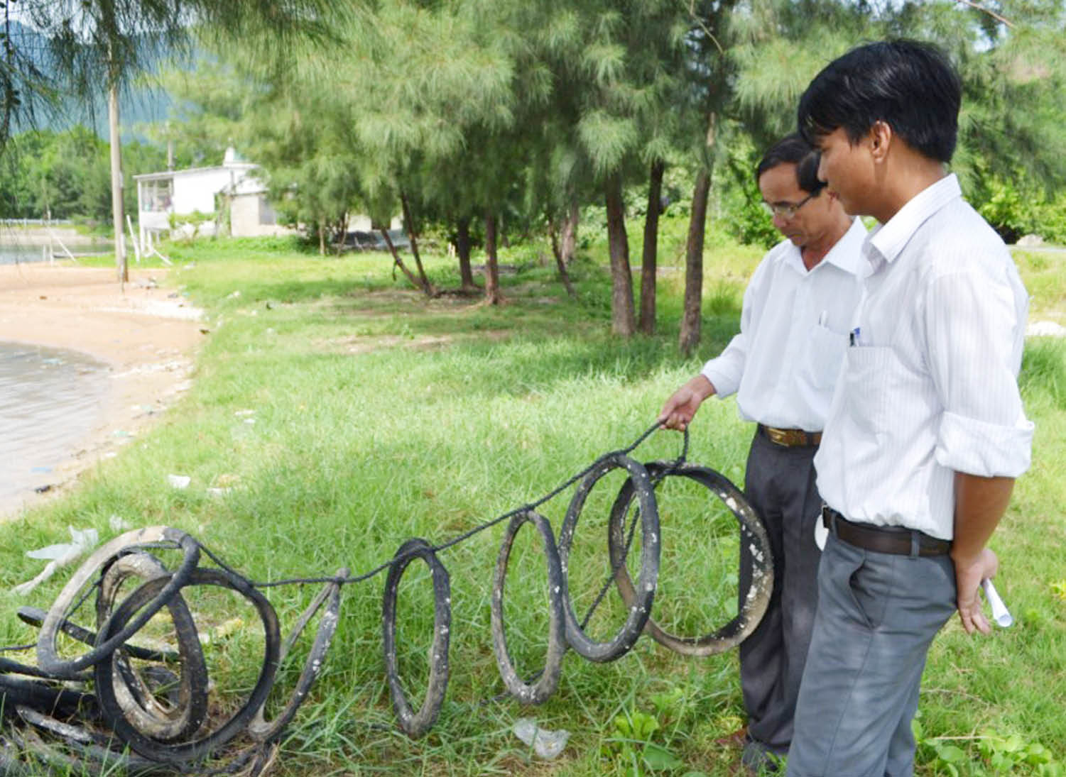Lốp xe được người dân thả xuống đầm Lăng Cô nuôi hàu gây ô nhiễm nguồn nước