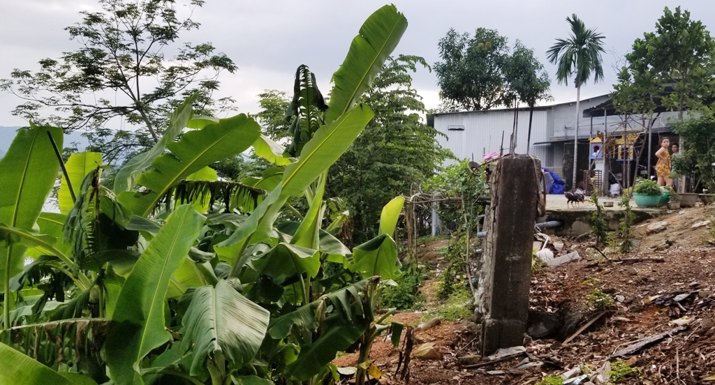 Vùng sạt lở tại thôn Hiền sĩ đã sát móng nhà dân