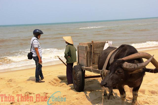 Theo các hộ dân, gần đây giá cát xây dựng lên cao nên các hộ dân có xe trâu, tận dụng khai thác cát biển làm vật liệu xây nhà hoặc bán cho các xe tải chở cát trong và ngoài xã với vài chục nghìn đồng/xe trâu. Ông N.V.Đ (thôn 5, xã Vinh Thanh) cho biết: “Xã cấm lấy cát lâu rồi, ở đây bà con chỉ ra kiếm vài xe vô làm nhà thôi. Cũng có mấy hộ lấy cát bán cho xe tải ở Vinh Hiền”. Chỉ “kiếm vài xe làm nhà”, nhưng theo quan sát của chúng tôi, từ buổi trưa đến cuối giờ chiều, ông Đ., chở chừng trên 15 chuyến. Các “lái” trâu khác cũng chở từng tốp vài xe, mỗi xe vài chục chuyến vào tập kết ở rừng dương, chờ xe tải tới lấy hoặc chở thẳng về nhà.